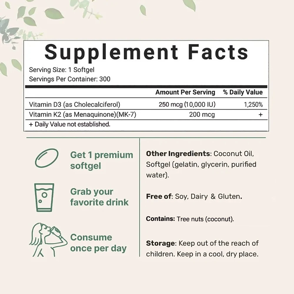 Ingredients: D3 + K2 Vitamin