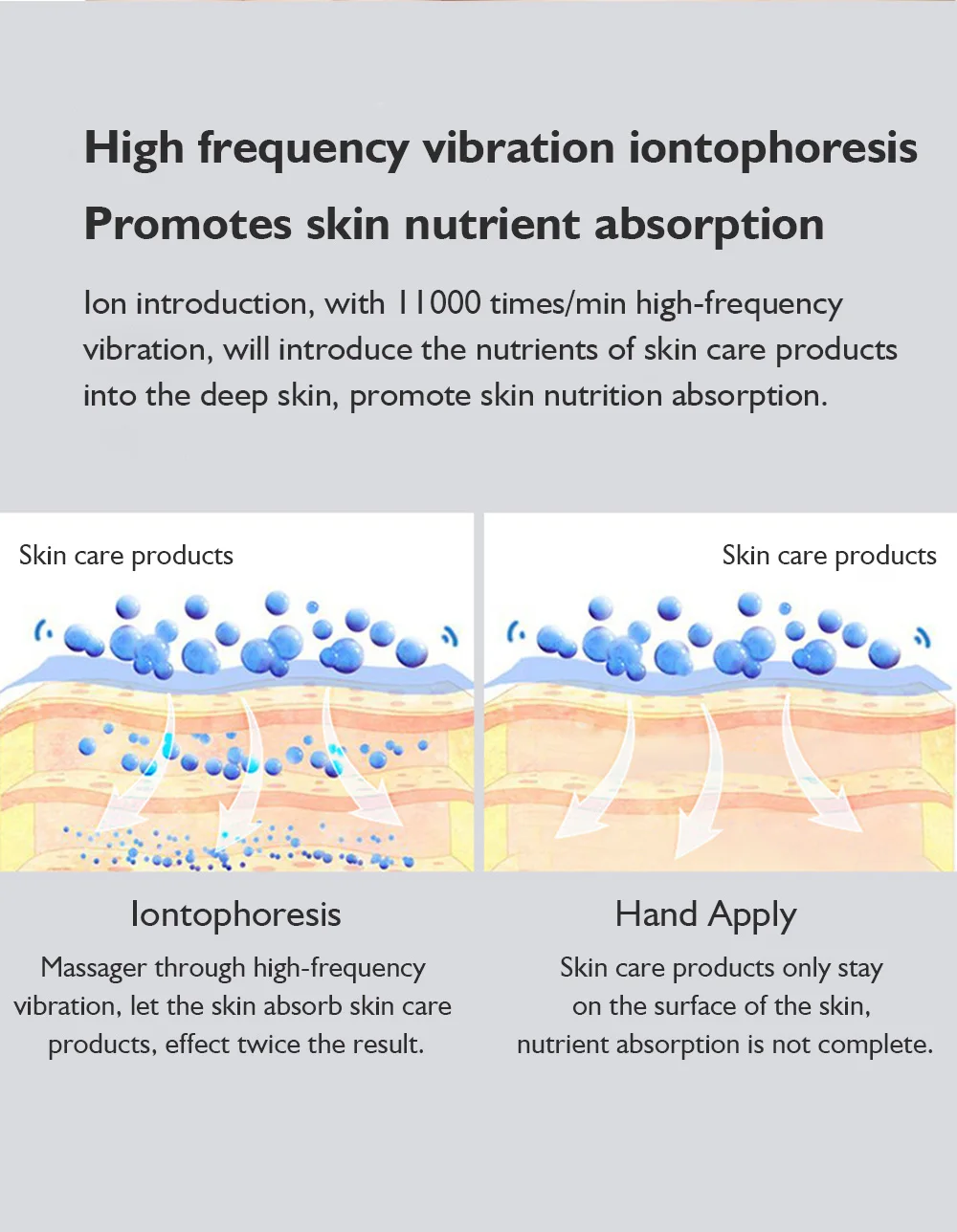 Technology: warm feeling/ion vibration/power switch
